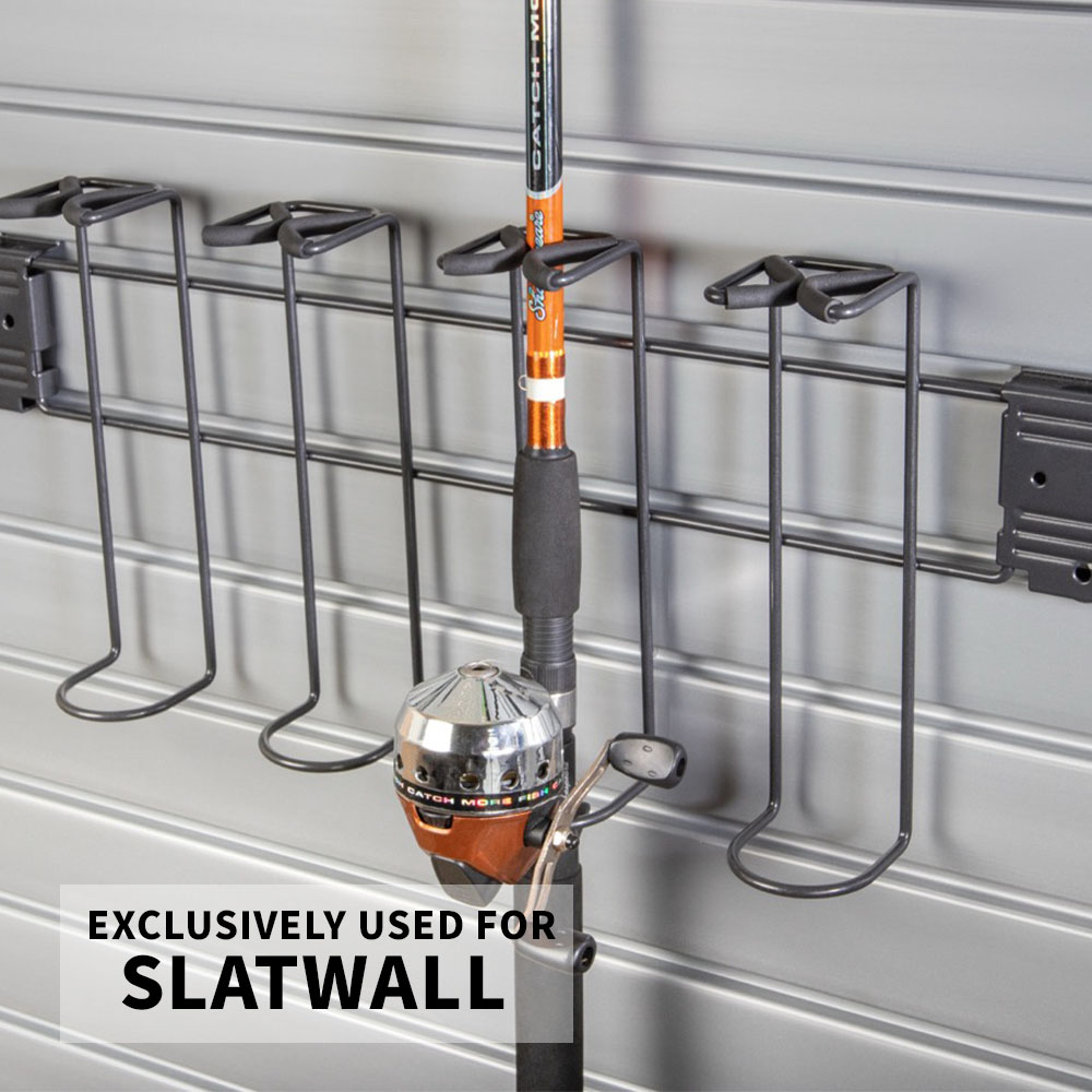 Durable, vertical storage for your fishing rods. Lifted up and off the floor, your fishing rods will have a designated spot to stay in perfect condition, within sight, and ready to grab.