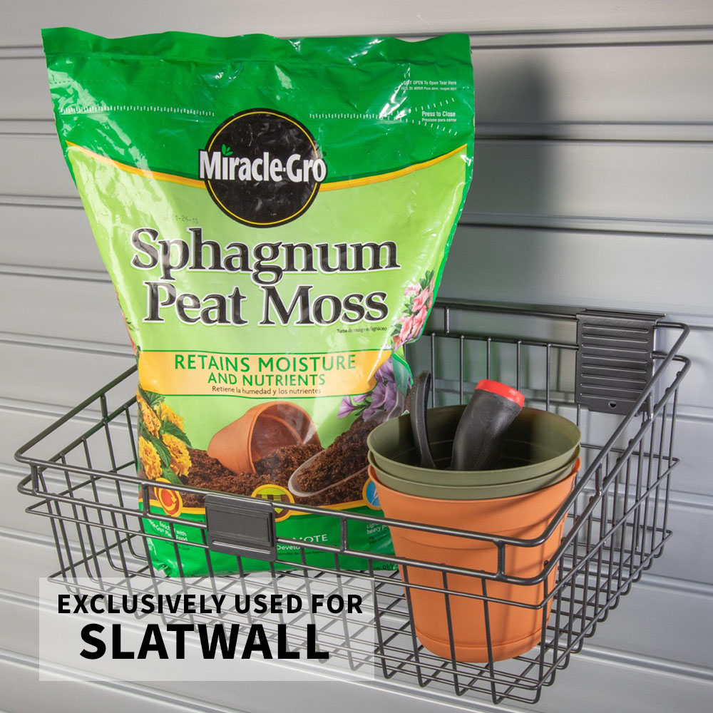 Attach a Medium Wire Basket to your Slatwall solution to lift and hold an assortment of items that you need within reach and ready to go like pet supplies, paint supplies, tennis balls, and more.